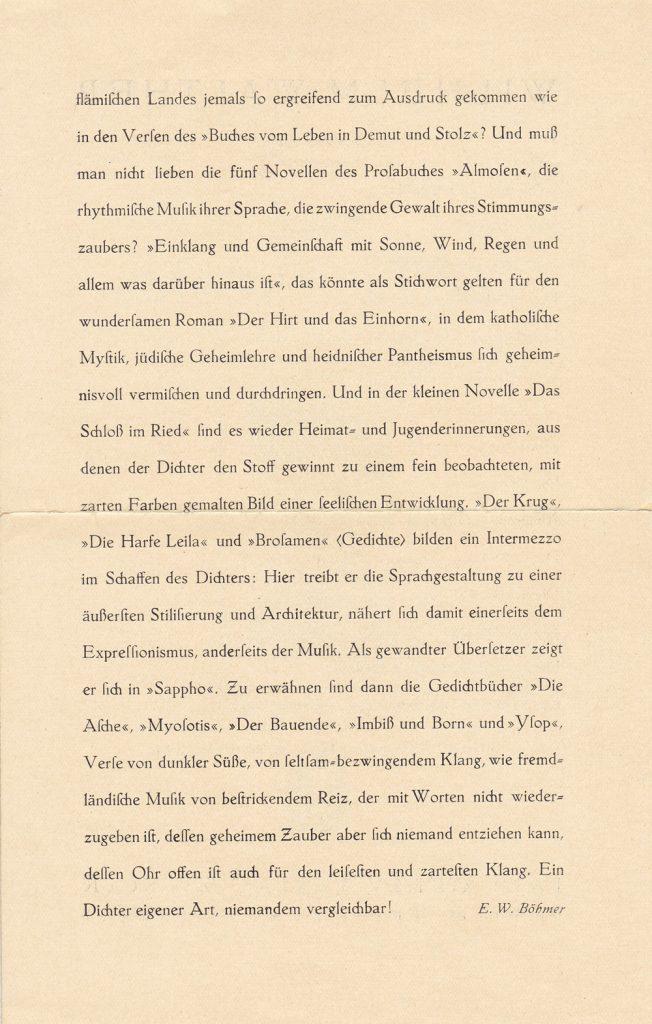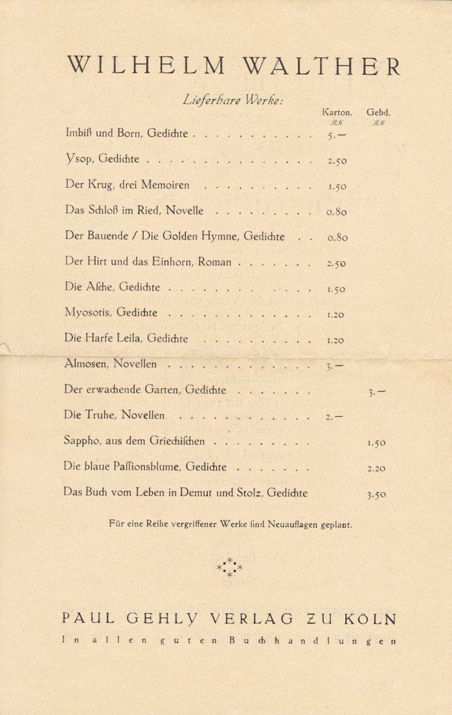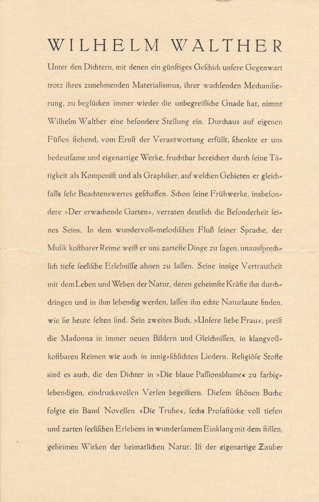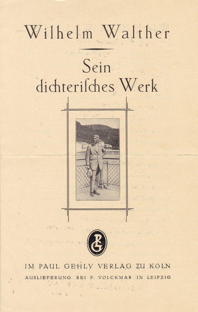 Abb. 3: „Wilhelm Walther – Sein dichterisches Werk“ mit einem Text von Emil Böhmer / Werbeschrift des Paul Gehly Verlags, Köln, vermutlich ca. 1920